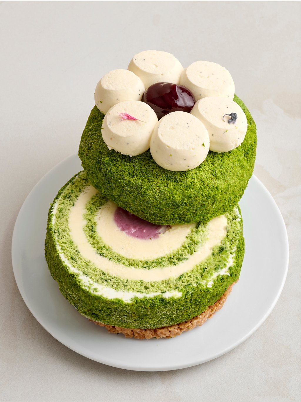 Jarní dezert plný kontrastů: špenátový korpus, krém z cream cheese a bílé čokolády a lehký mousse z černého rybízu. Svěží, krémový a ovocně pikantní – ideální na Velikonoce.