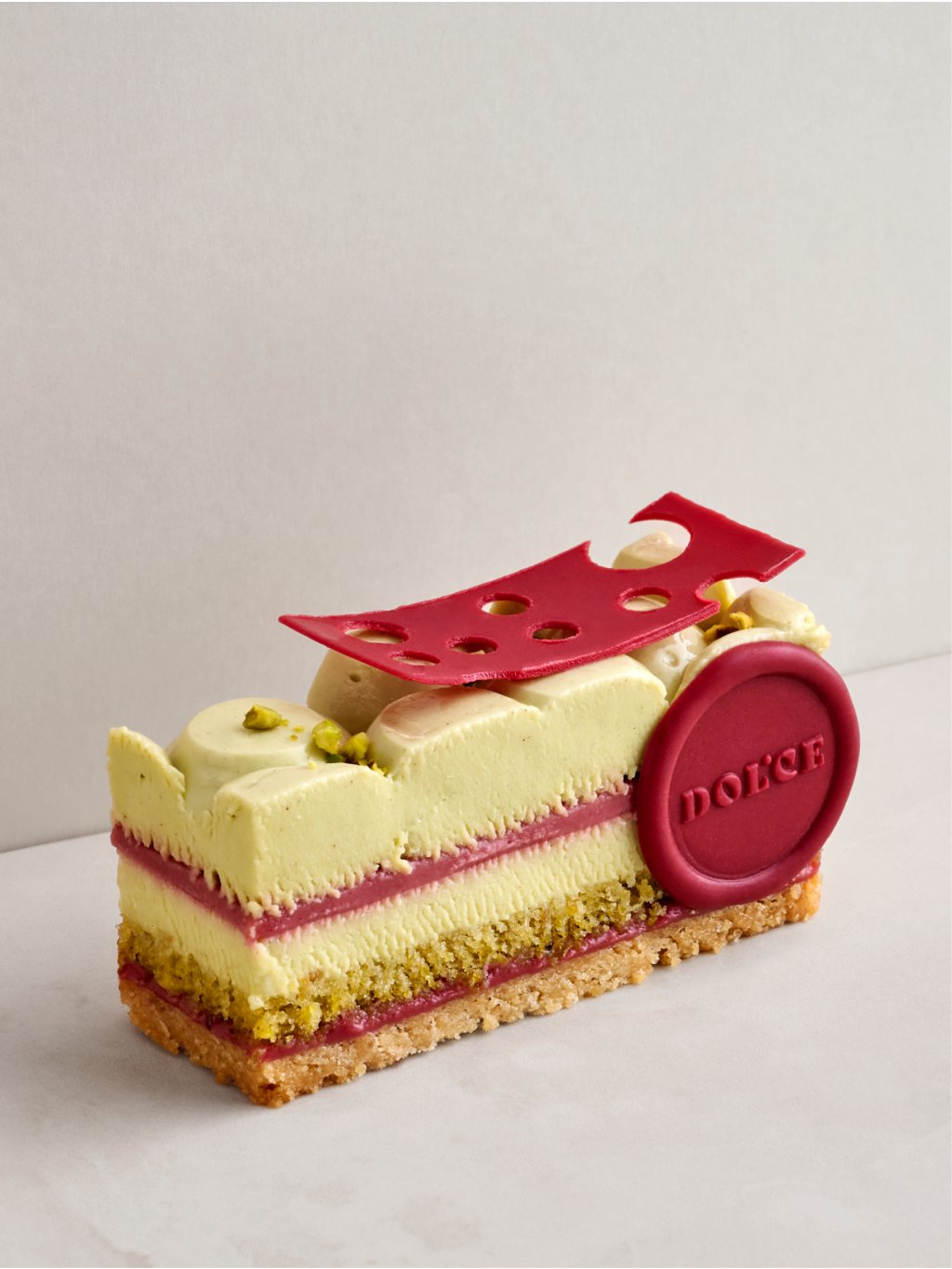 Křupavý crumble, jemný moelleux, nadýchaná pistáciová mousse a bohatá malinová ganache. Dezert plný kontrastů, kde se křehkost, hebkost a ovocná svěžest spojují v dokonalé kombinaci chutí – každé sousto je malým výletem do slunné Itálie.