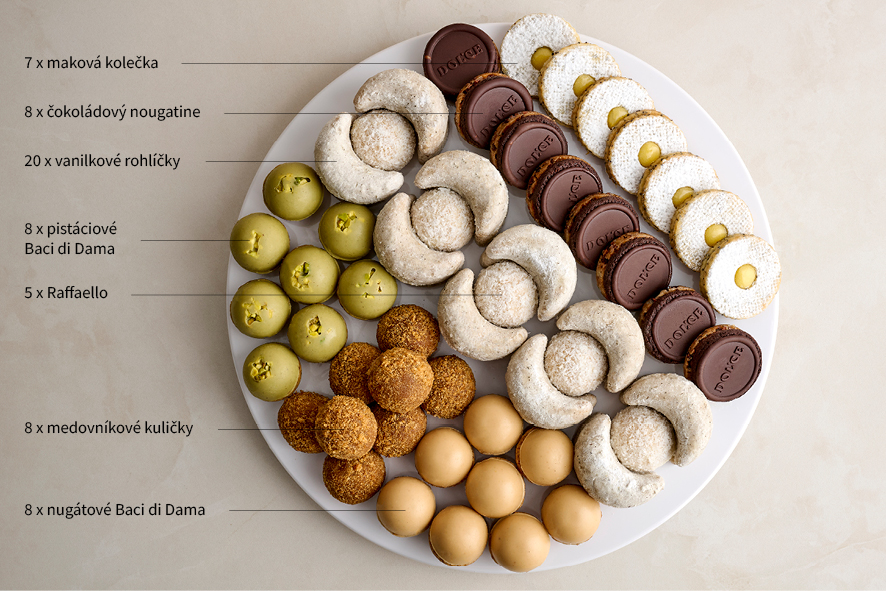 Cukroví je vyráběno ručně, proto se jeho konečná podoba může od výrobku na fotografii mírně lišit.