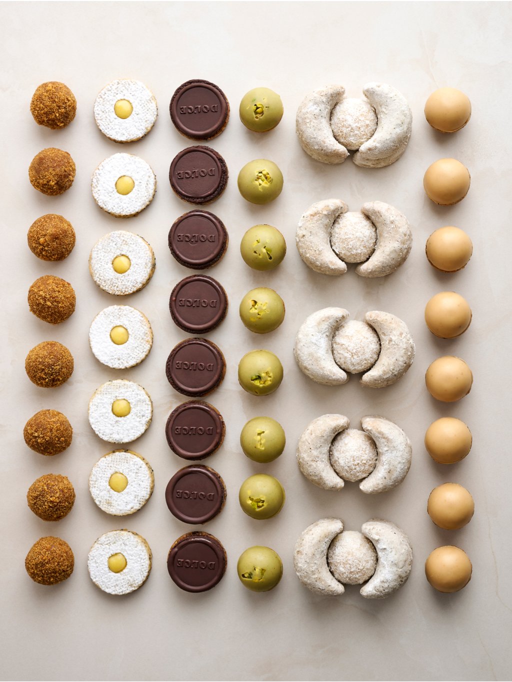 Všechny naše druhy cukroví obsahují kvalitní suroviny, jako madagaskarskou vanilku, lískové ořechy z Piemonte, pistácie a mandle ze Sicílie.